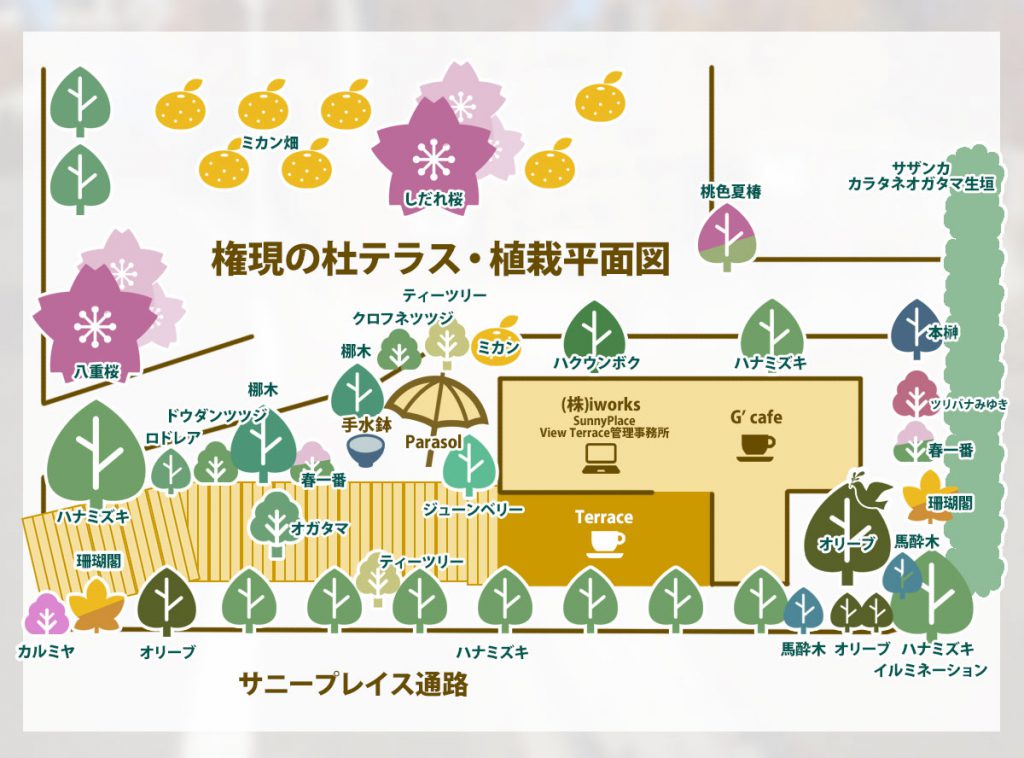 G’cafeでは 豊かな植栽で皆様をお迎えいたします